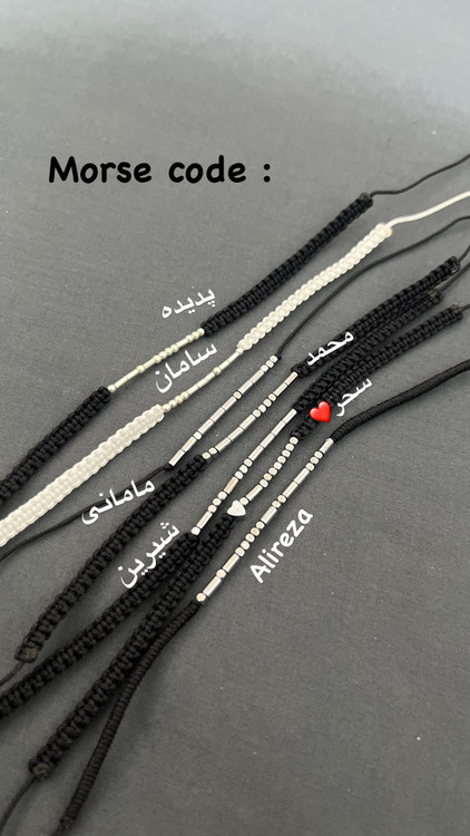 کدمورس اسمی که میخواین رو فارسی یا انگلیسی چون کدمورسش متفاوت هست لطفا توی توضیحات بنویسید ومدل بند بافت هم انتخاب کنین